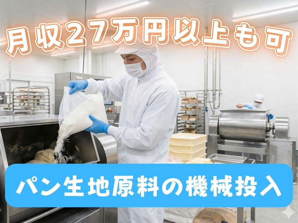 《パン生地の原料を機械にIN♪》未経験歓迎/月収27万円以上も可/残業なしの定時帰宅/週休2日★