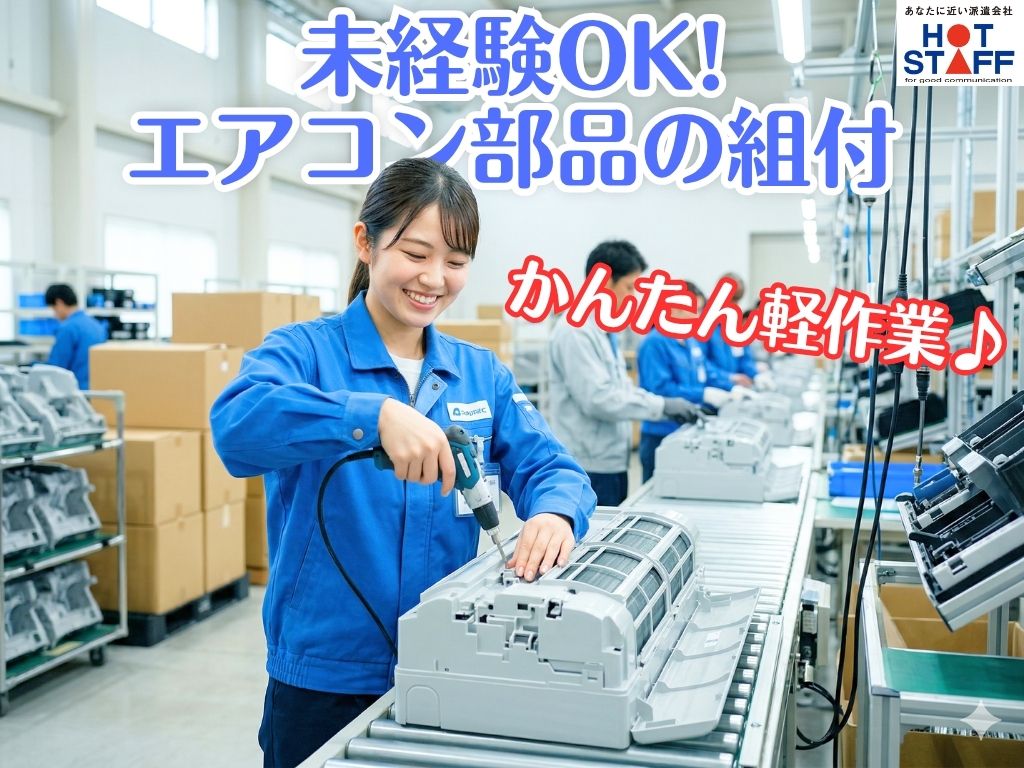 《エアコン部品の供給+組み立て♪》未経験歓迎/工具や機械操作なし/残業月10H/空調完備の職場★