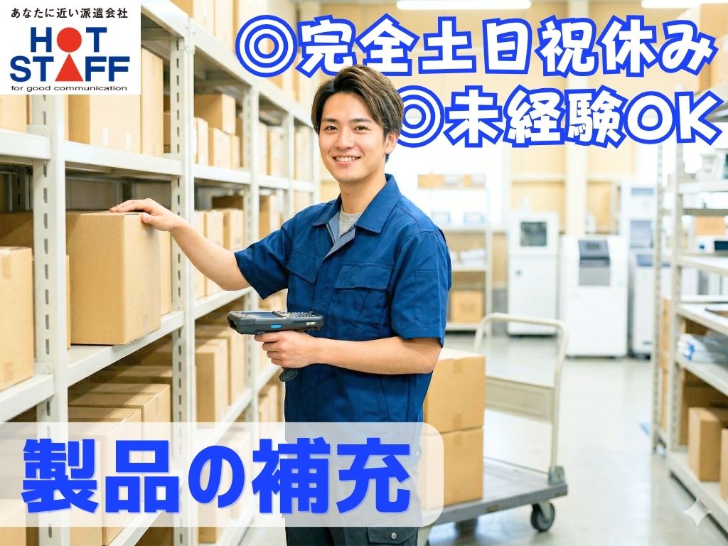 《未経験OK◎倉庫内で製品補充》完全土日祝休みで年間休日120日以上/残業任意/8:30~17:30