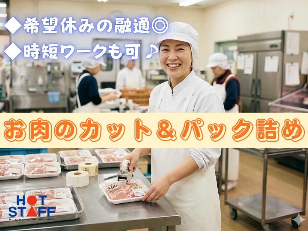 《はじめてさん歓迎・お肉のカット&パック詰め》1日6h〜時短パート/お好きな平日休みを設定OK