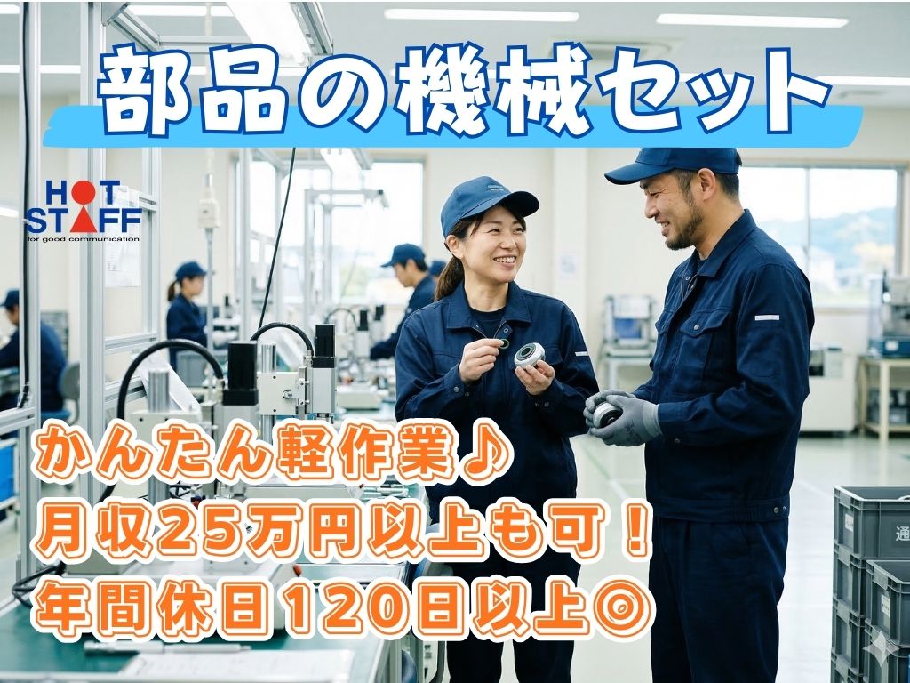 《1kg未満の部品を機械セット♪》機械OP経験が活かせる/土日休み/月収27万円以上も可/2交替★