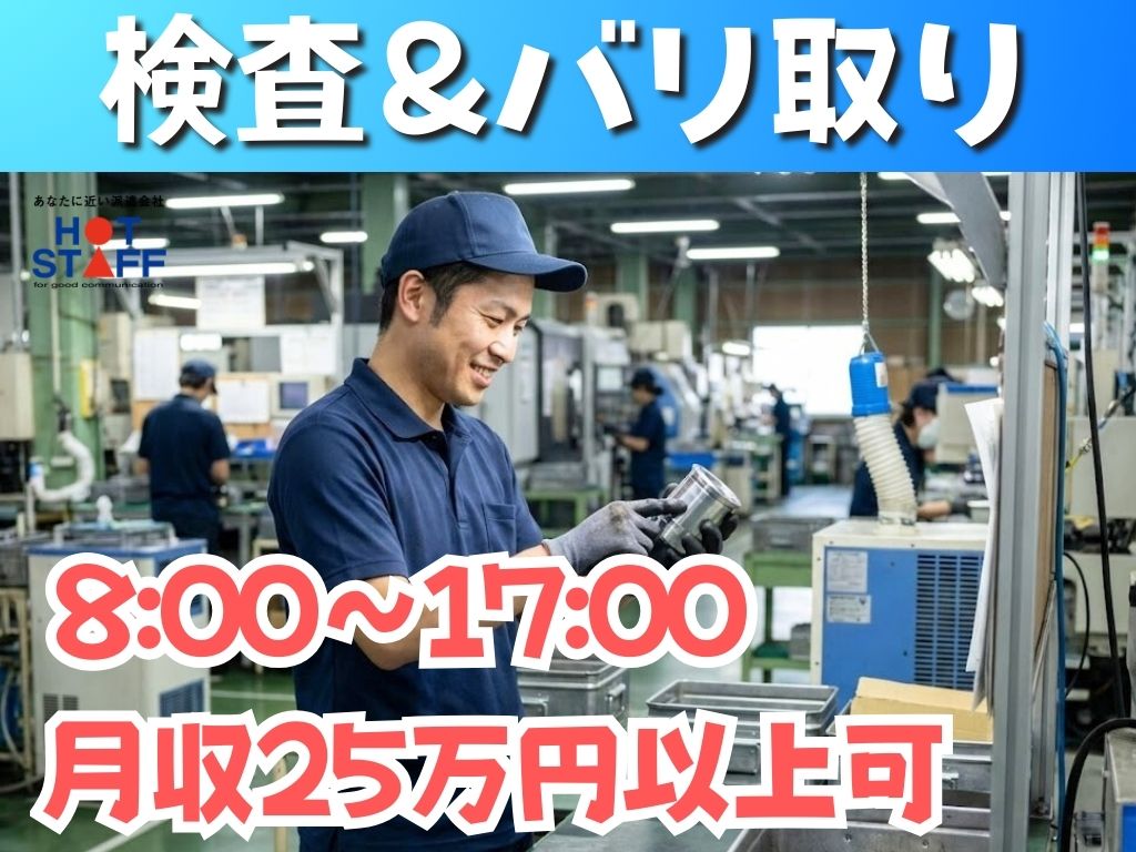《自動車部品のキズのチェック&手直し◎》8:00~17:00/土日休み/残業月20hほど/定着率◎