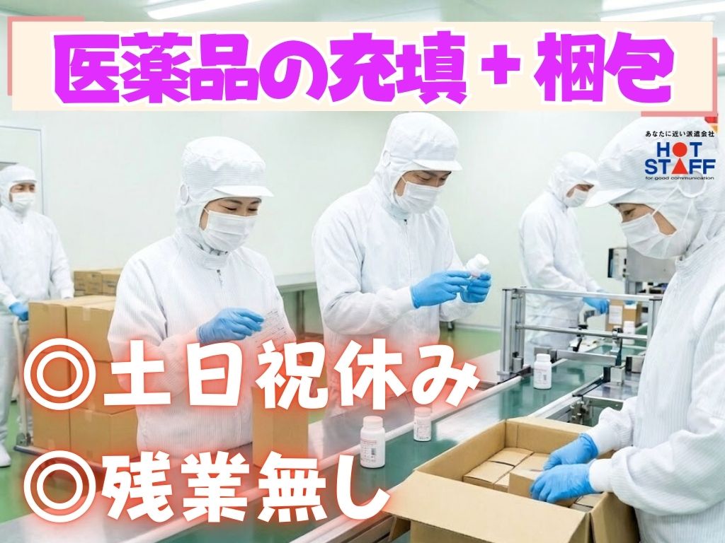 《医薬品の箱詰め&目視でチェック♪》完全土日祝休み/残業なし/未経験OK/準夜勤専属★