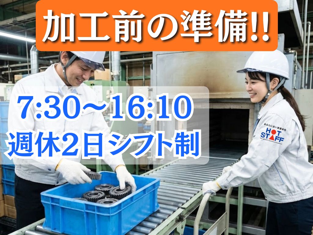 《熱加工する前の車部品の準備スタッフ!》週休2日制シフト制/希望日の相談OK♪/7:30〜16:10