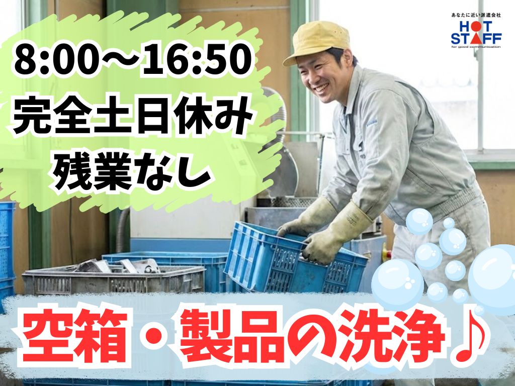 《部品や空箱を機械にセットしてキレイに洗浄♪》8:00〜16:50/完全土日休み/残業なし◎