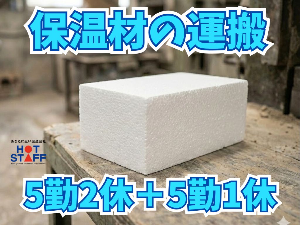 《保温材を取り出して台車に載せて運ぶだけ♪》5勤2休+5勤1休/髪色・アクセ自由/人間関係◎
