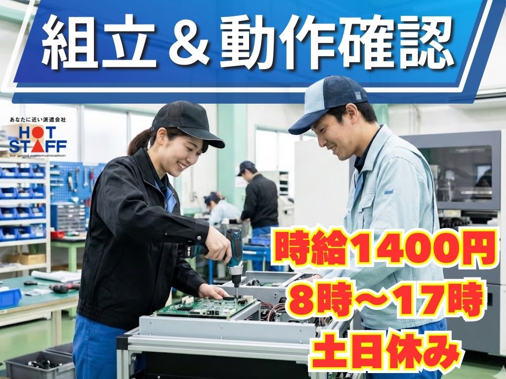 《自動ロボットの部品を組立&動作チェック◎》未経験OK/完全土日休み/8:00~17:00/空調完備