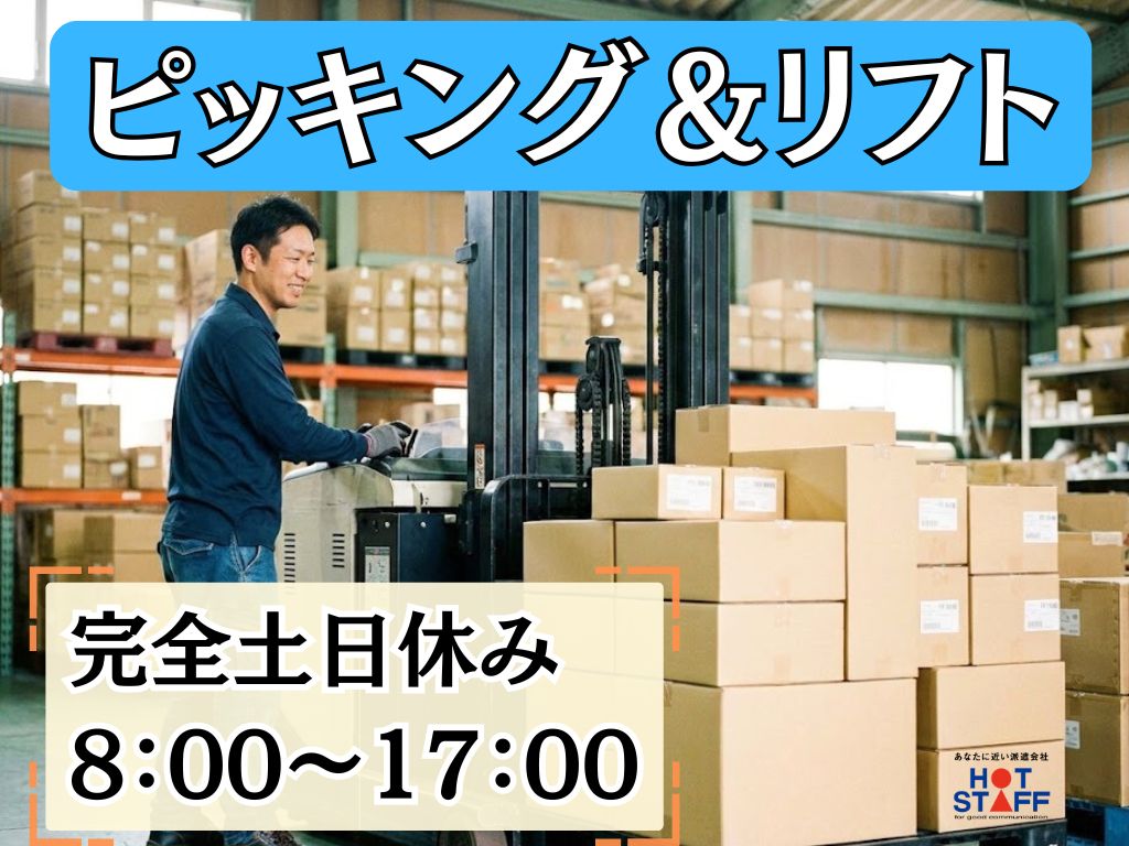 《段ボールのピッキング&リーチリフトで運搬♪》完全土日休み/残業月10~20h/8:00~17:00
