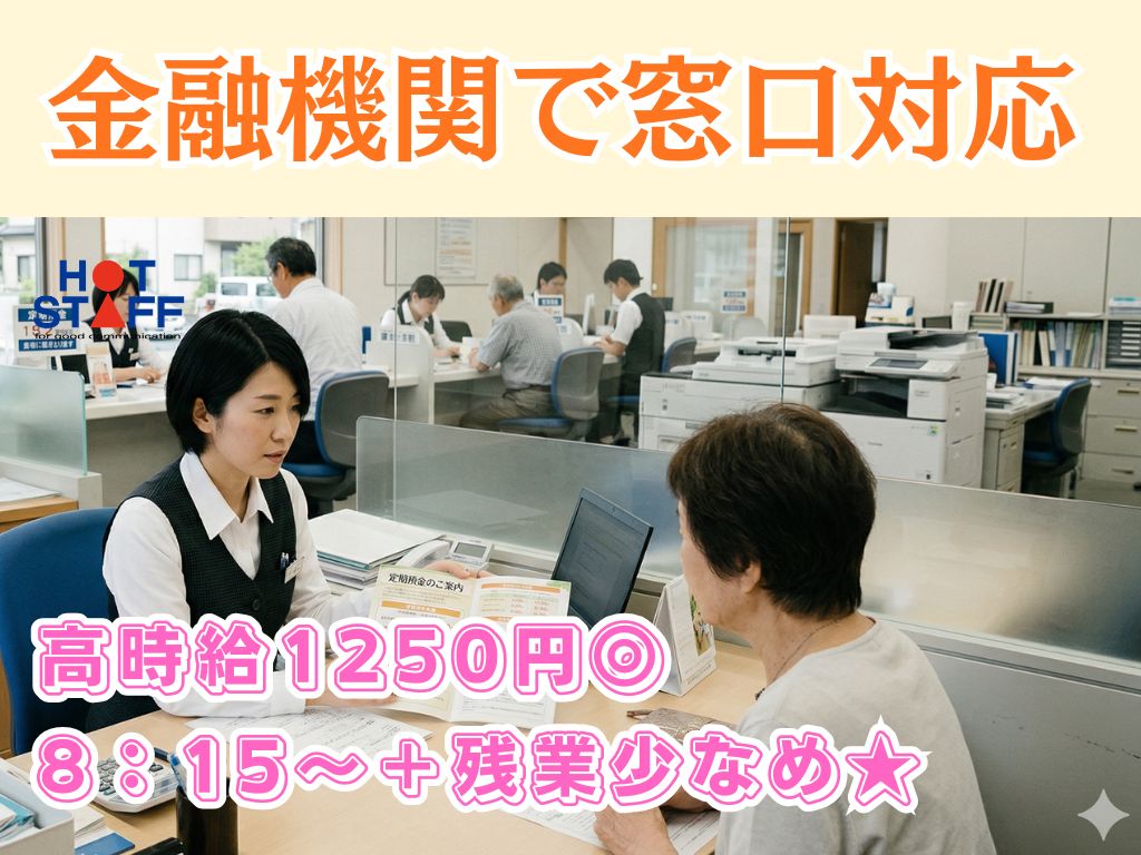 《地域の金融機関で窓口対応★》経験を活かせる/高時給1250円/8:15~17:15+残業少なめ♪