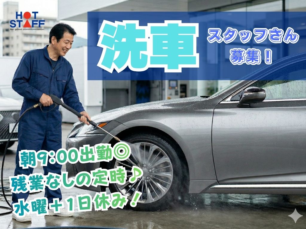 《運転業務ナシ・担当するのは洗車だけ★》未経験歓迎/朝9:00~/残業なしの定時/水曜+1日休み◎
