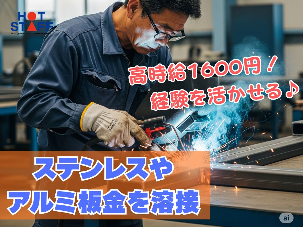 《ステンレスやアルミ板金を溶接》経験を活かせる/7:50~17:00+残業なし/月収26万円以上も可