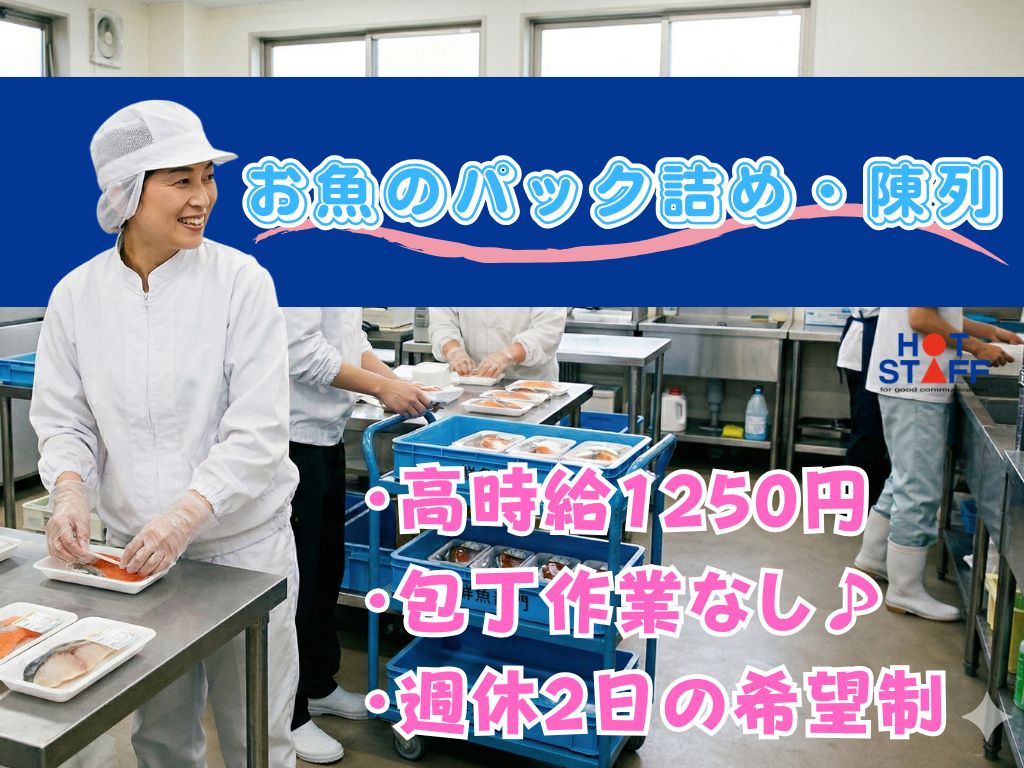 《カット作業なし!お魚のパック詰め・陳列》未経験歓迎/8:00〜17:00勤務/休みの融通バツグン♪