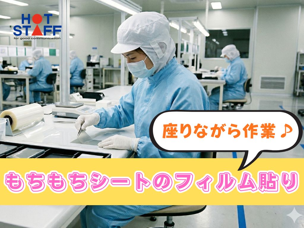 《もちもちシートをフィルムにペタッ!》座りの軽作業/完全土日祝休み/月収30万円以上も可/夜勤専属★