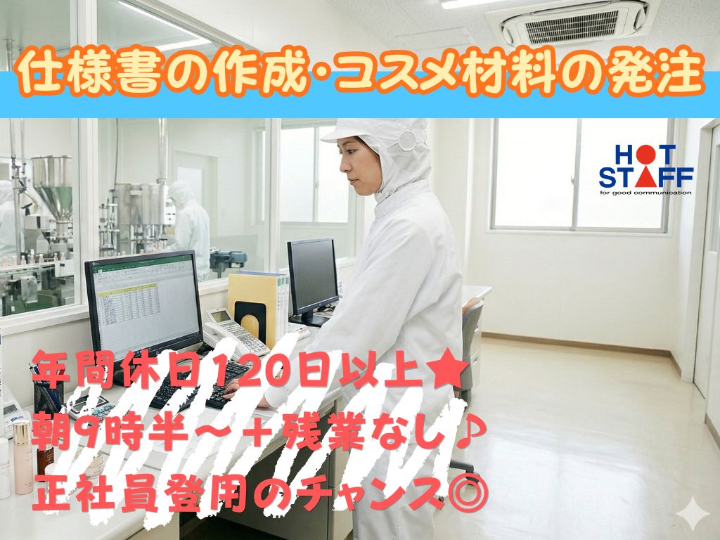 《仕様書の作成・コスメ材料の発注♪》完全土日祝休み/朝9時半~+残業なし/正社員登用のチャンス◎
