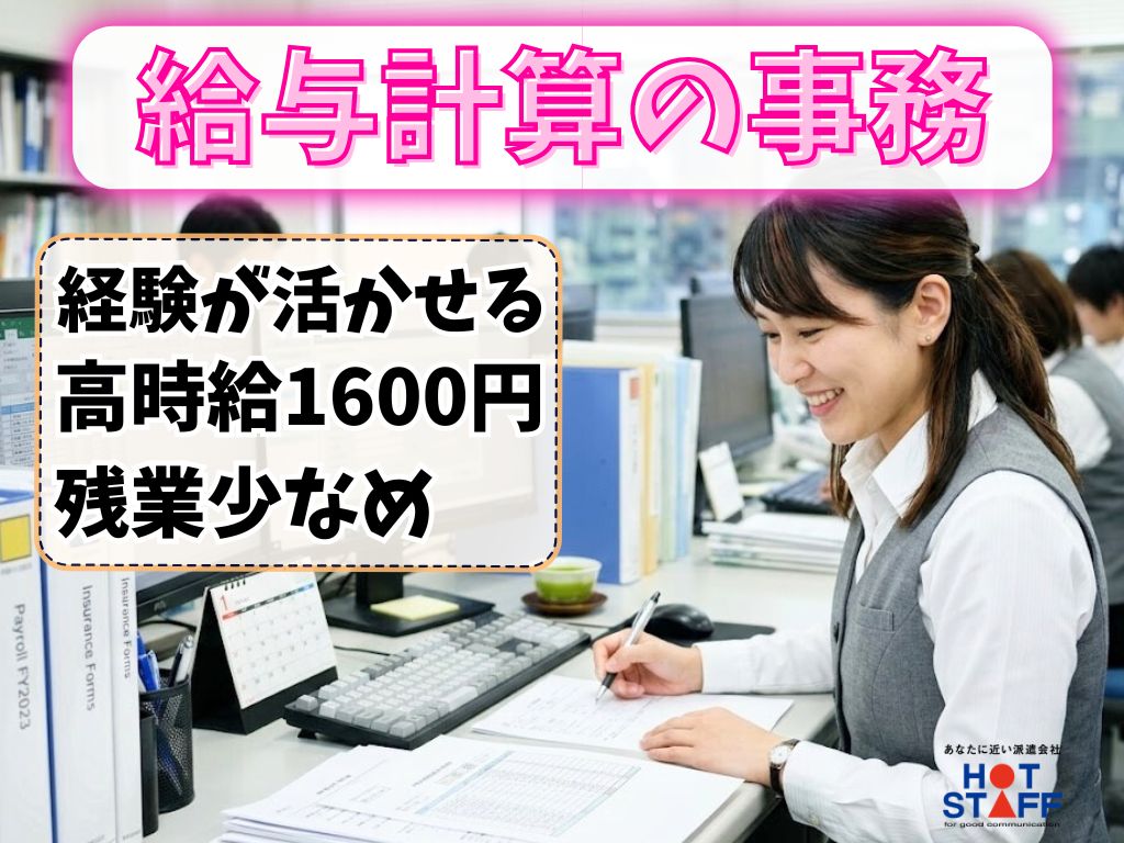 《給与計算の経験が活かせる★システム入力や給与計算の事務作業♪》基本土日祝休み/残業月10Hほど◎
