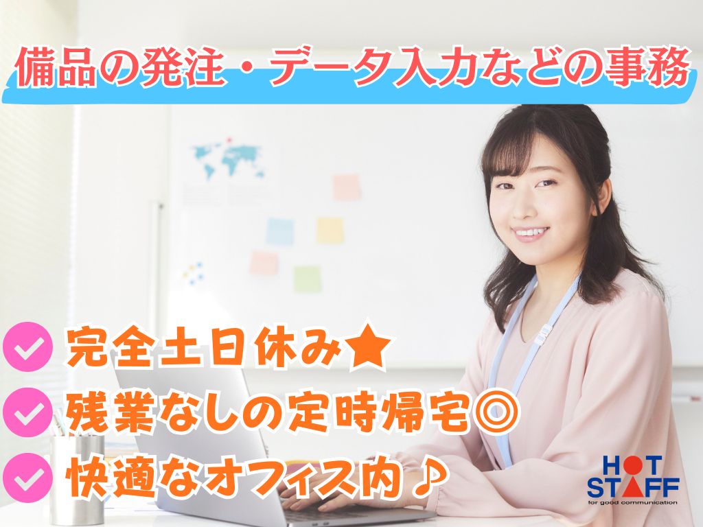 《備品の発注・データ入力などの事務作業♪》完全土日休み/8:30〜+残業なし/快適なオフィス内◎