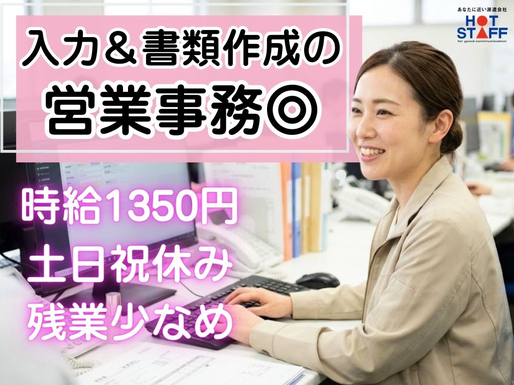 《資料や発注書の作成》事務経験が活かせる/完全土日祝休み/残業なし/正社員が目指せる/高時給