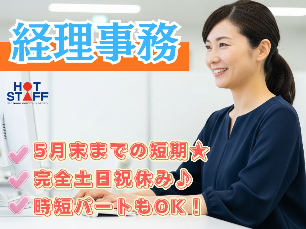 《経理事務★》経験を活かせる/5月末までの短期バイト/完全土日祝休み/朝9時~時短ワークも可♪