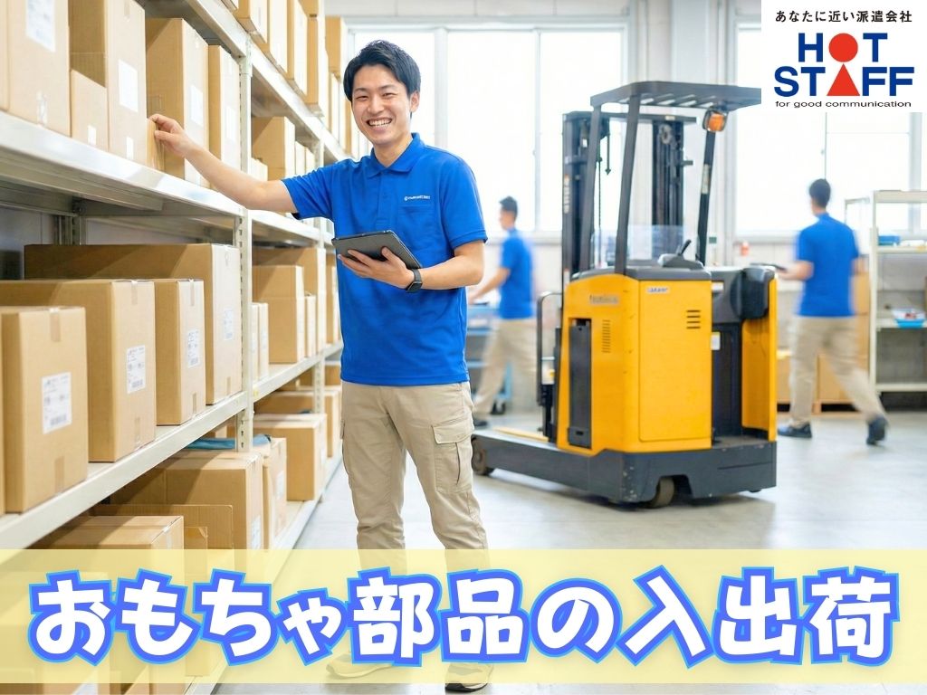 《リフト作業少なめ!おもちゃ部品の入出荷》完全土日祝休み/残業なし/8:00~17:00
