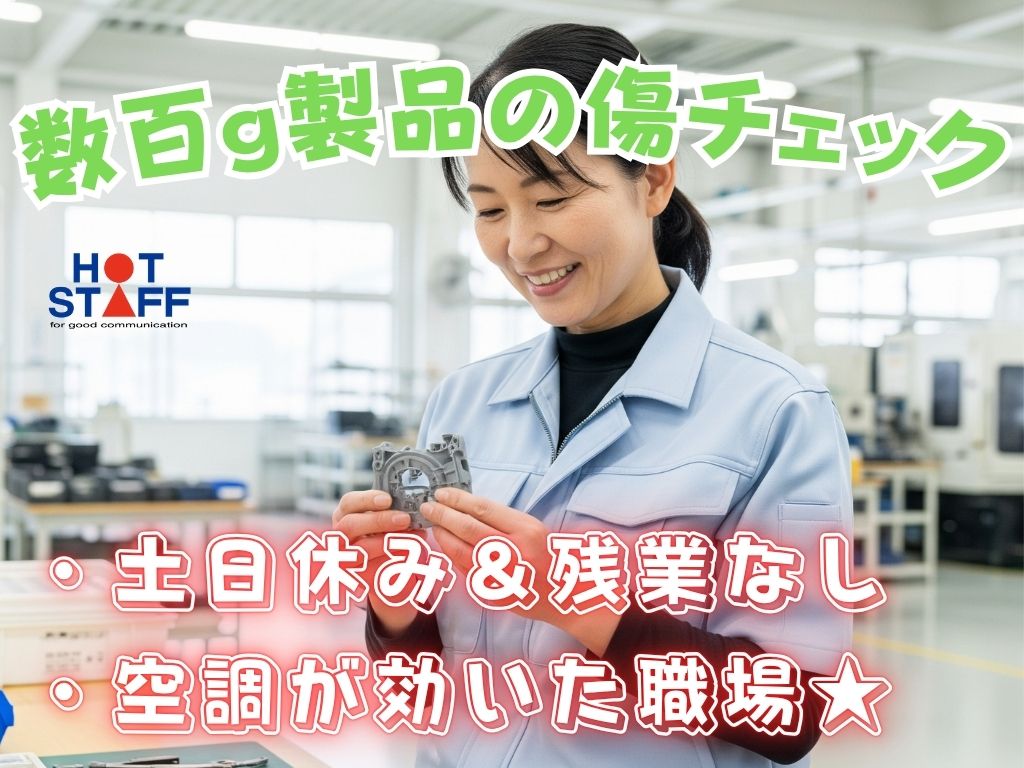 《1つの作業に集中できる・数百g製品の傷チェック♪》土日休み&残業なし/空調が効いた快適職場★