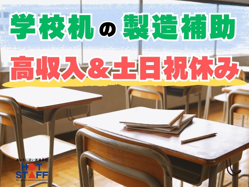 《学校用の机や家具をつくるお手伝い!》完全土日祝休み/月収27万円以上可★/空調完備の綺麗な工場♪