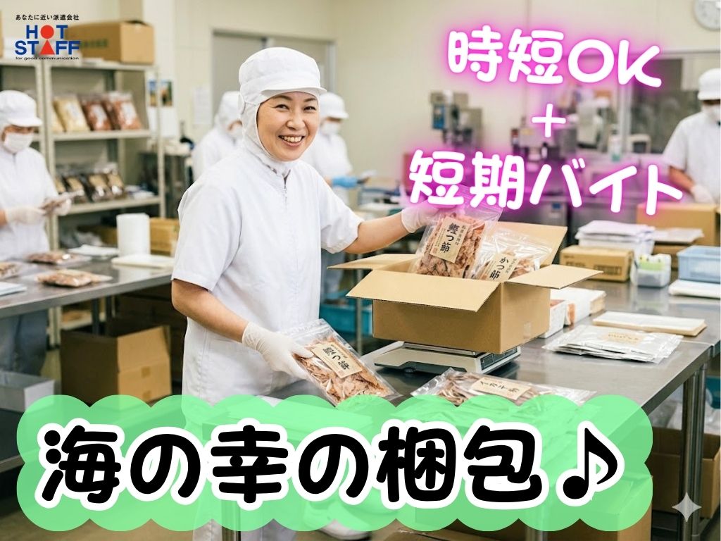 《かつお節やイカの干物の計量&袋詰め♪》5月末までの短期★/実働6時間から時短相談OK/土日祝休み