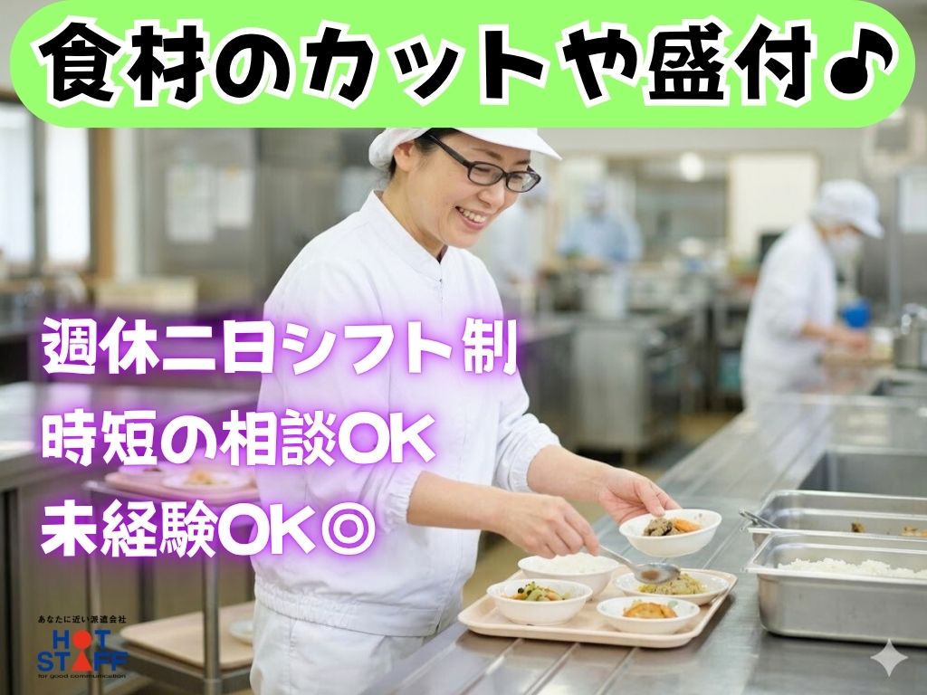 《老人ホームで食材のカットや盛付などの補助♪》未経験OK/残業なし・時短相談可/週休2日シフト制◎