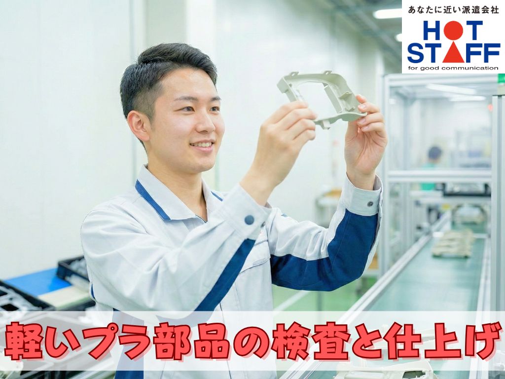 《軽いプラ部品の検査・仕上げ》かんたん軽作業/完全土日休み/1ヶ月ごとの交替制で負担少なめ