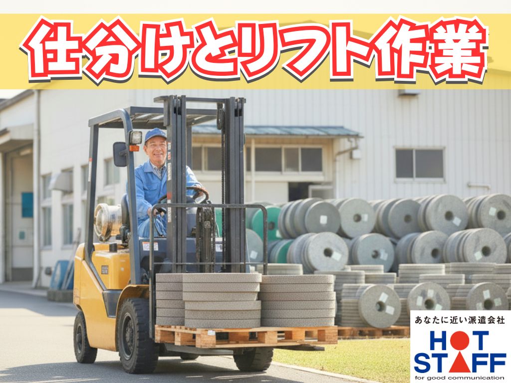 《リフト少なめ・製品の仕分けやリフト作業》ペーパー・ブランクOK/15:20までの時短/土日完全休み