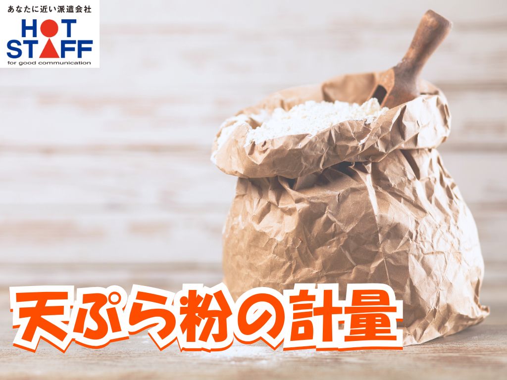 《天ぷら粉の計量作業》6月末まで/高時給/完全土日祝休み/残業少なめ/日勤専属か交代選べる