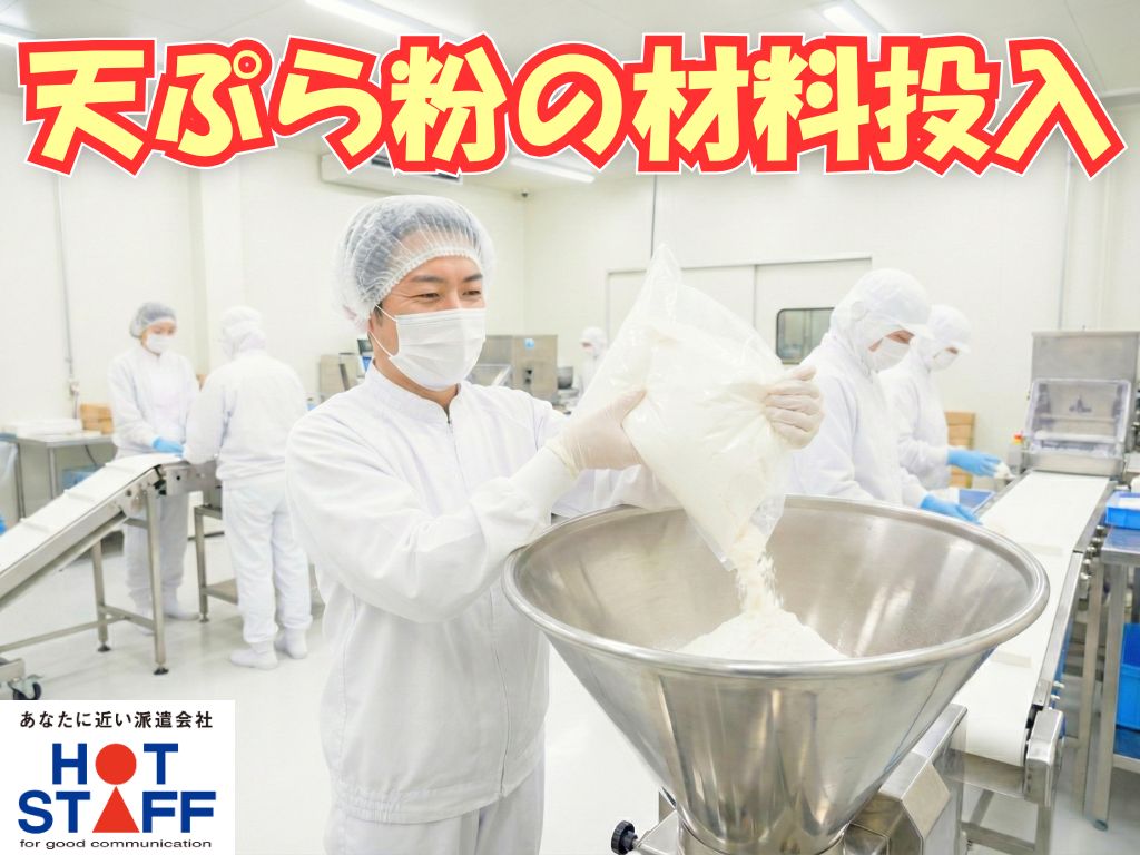 《天ぷら粉の材料投入》未経験でも高時給スタート/完全土日祝休み/残業少なめ/9:00~17:30