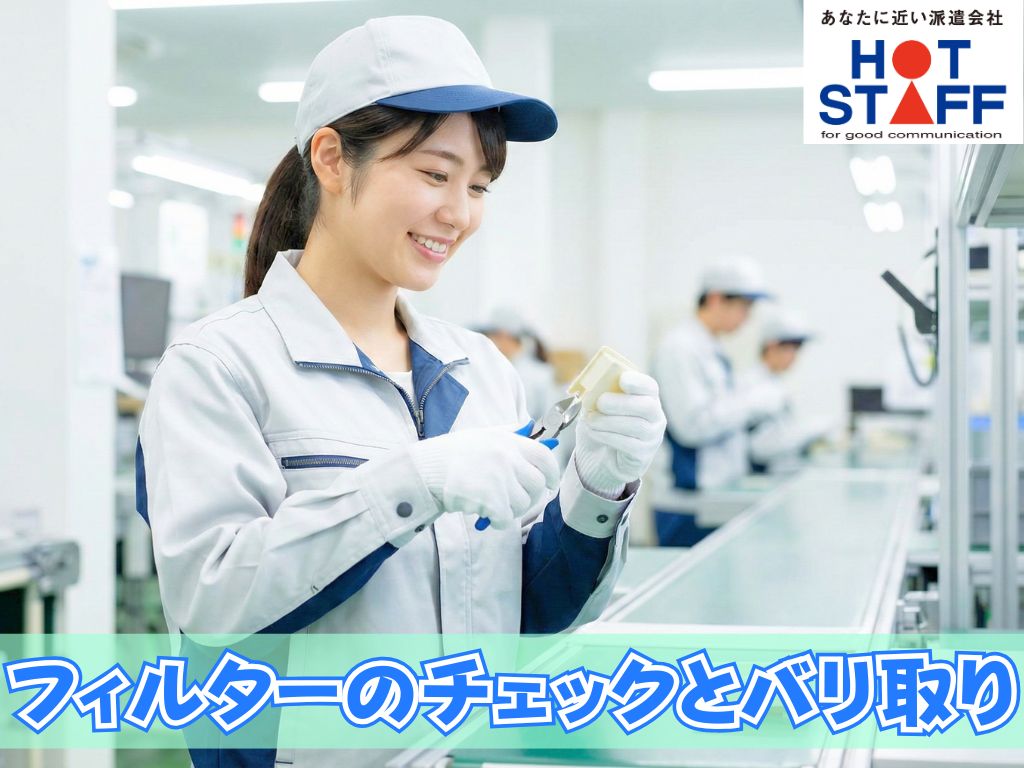 《フィルターのチェックとバリ取り》未経験OK/かんたん軽作業/完全土日休み/夜勤専属・18:00~