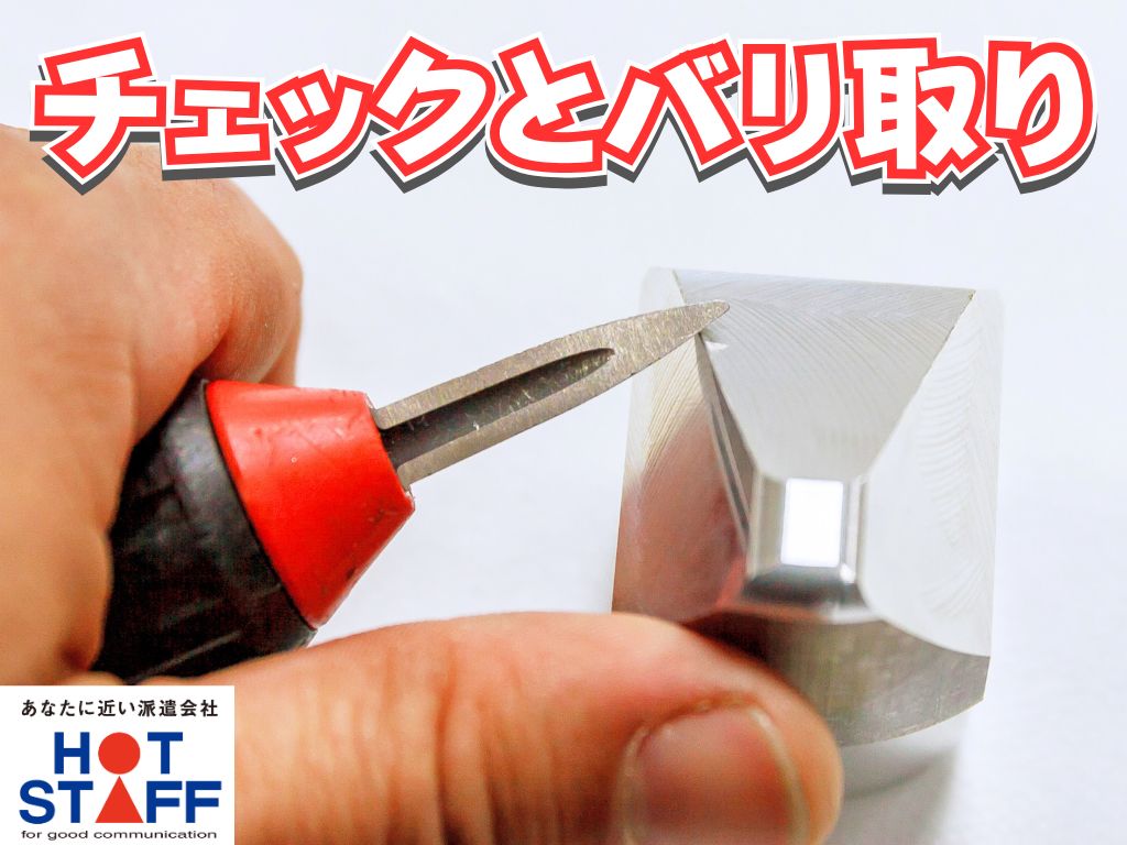 《アルミ部品のチェックとバリ取り》月収28万円以上も可/土日完全休み/未経験歓迎/交代勤務