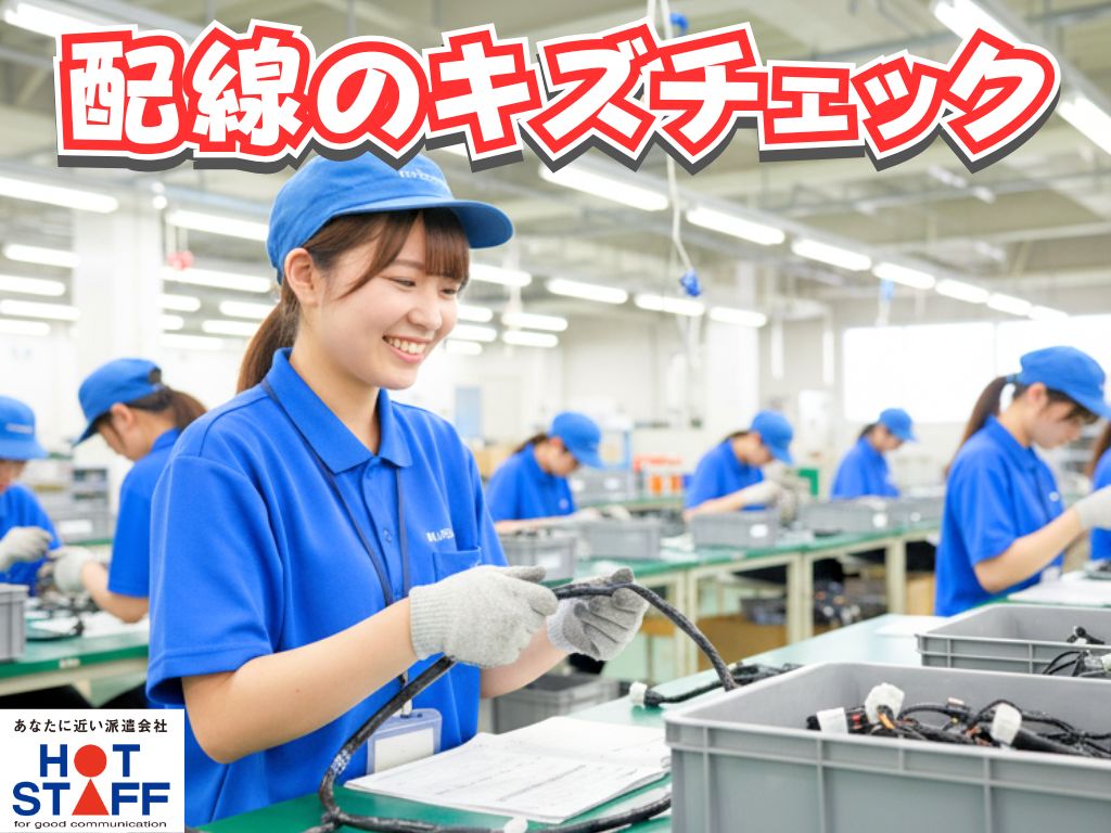 《車の配線のキズチェック》2月までの短期バイト/かんたん軽作業/土日完全休み/残業なし