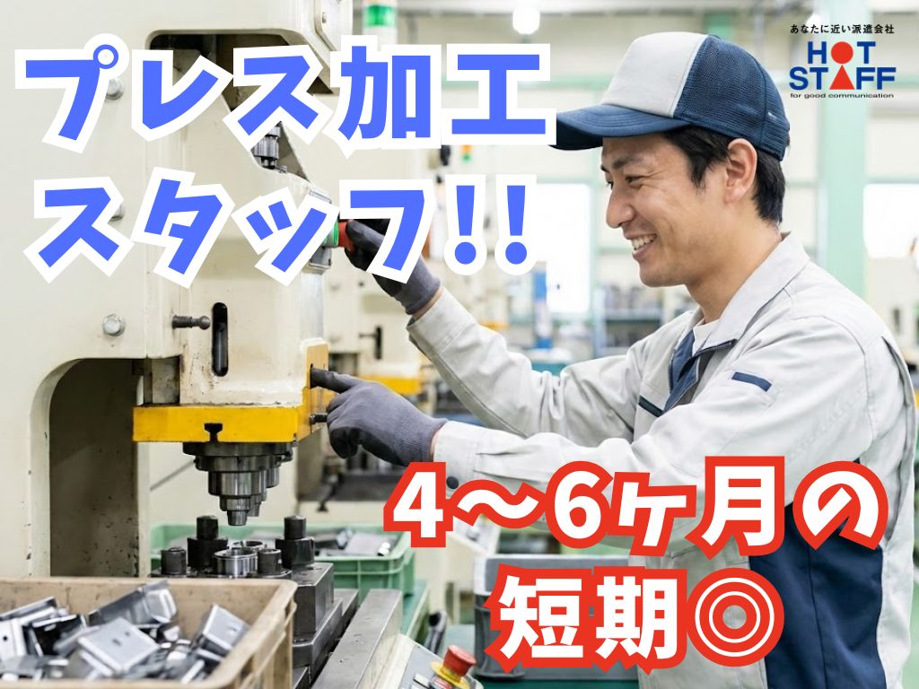 4~6ヶ月の短期バイト/未経験OK/完全土日休み《手のひらサイズのアルミ部品を機械でプレス加工!》