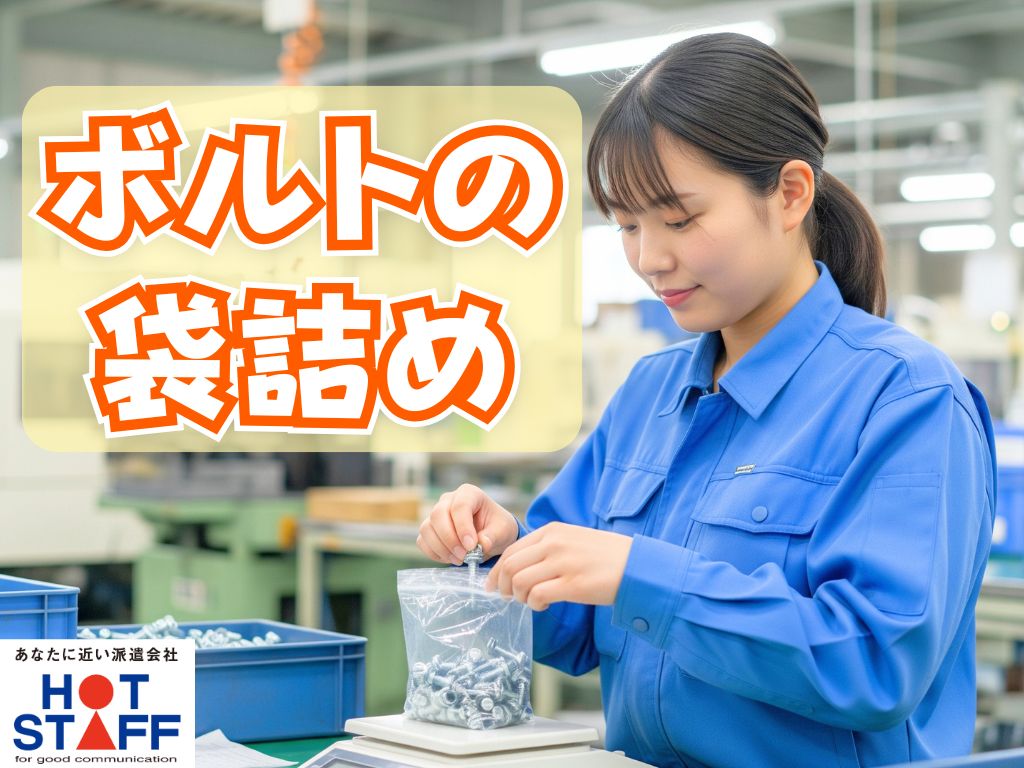 《ナットやボルトの袋詰めやラベルシール貼り》かんたん軽作業/完全土日休み/3月末まで/8:00~