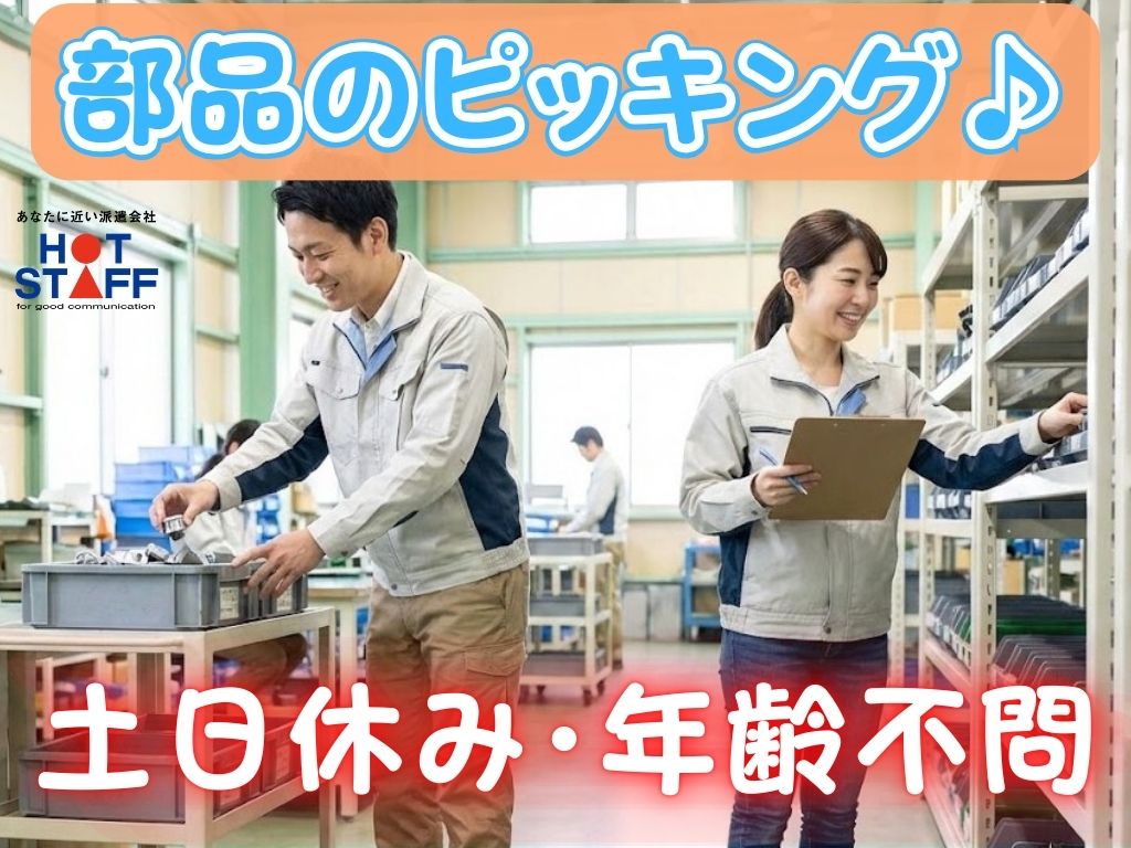 《車部品のピッキングや仕分け》未経験OK/好きな時間で働ける/完全土日祝休み/50代60代活躍中