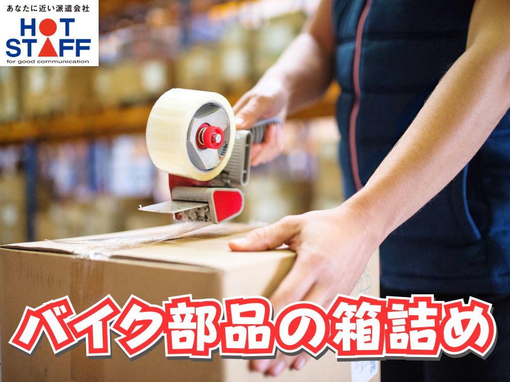 《バイク部品の箱詰めとラベル貼り》月収26万円以上も可能/未経験歓迎/土日休み/2交代