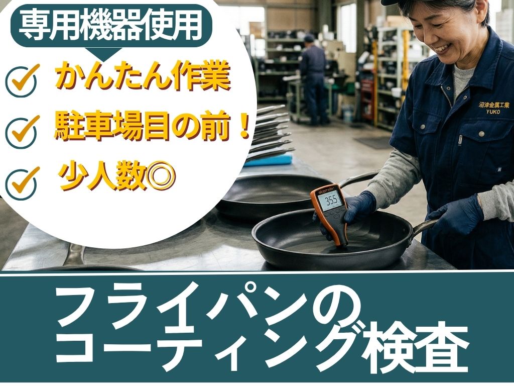 【駐車場目の前】未経験OK◎フライパンの厚さを機械でタッチして測定!/少人数でモクモク作業♪
