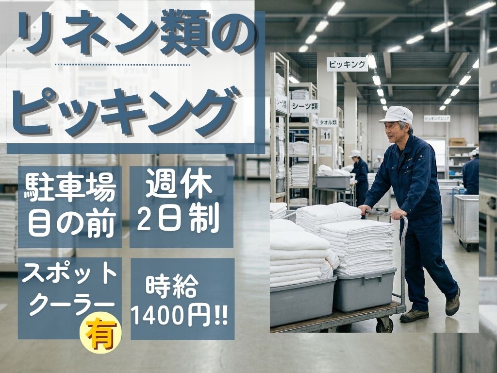 【高時給1400円!】シーツ類の仕分け・ピッキング/駐車場目の前!!スポットクーラーあり♪