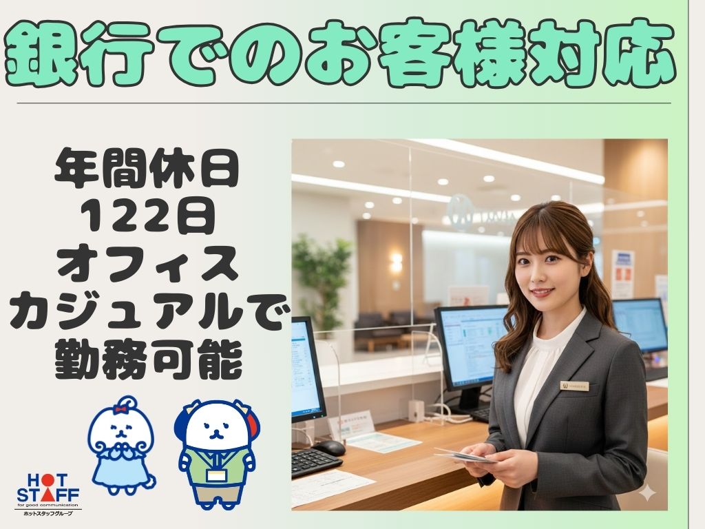 ≪ 銀行でのお客様対応!年間休日122日・オフィスカジュアルで勤務可能 ✧˖° ≫