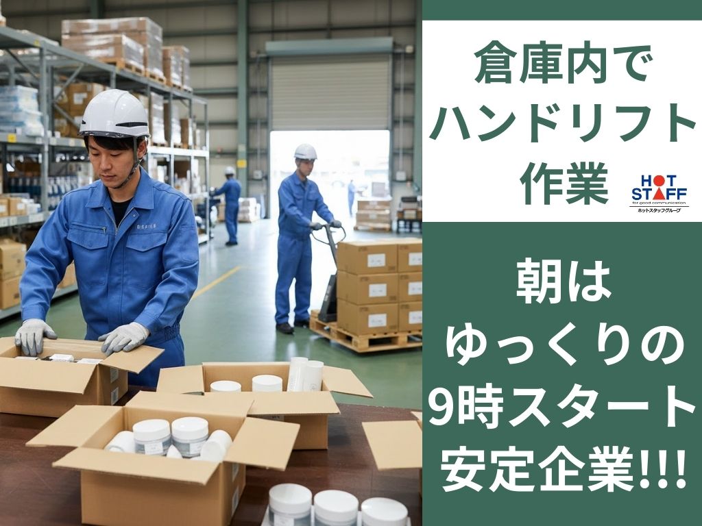 倉庫内でハンドリフト作業! \ 朝はゆっくりの9時スタート・安定企業!! /