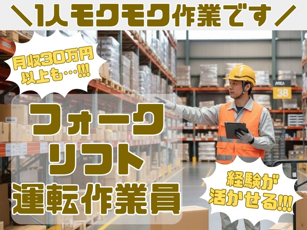 【※経験が活かせる!】フォークリフト運転作業員 〈 1人モクモク作業で、月収30万円以上も可能…! 〉