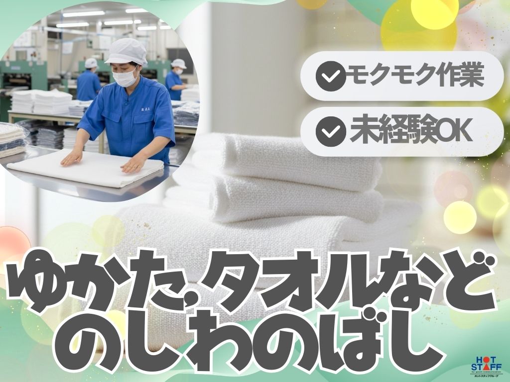 【ゆかた、タオルなどのしわのばし】未経験からOK!モクモク作業/シフト制(土日休み相談可♪)