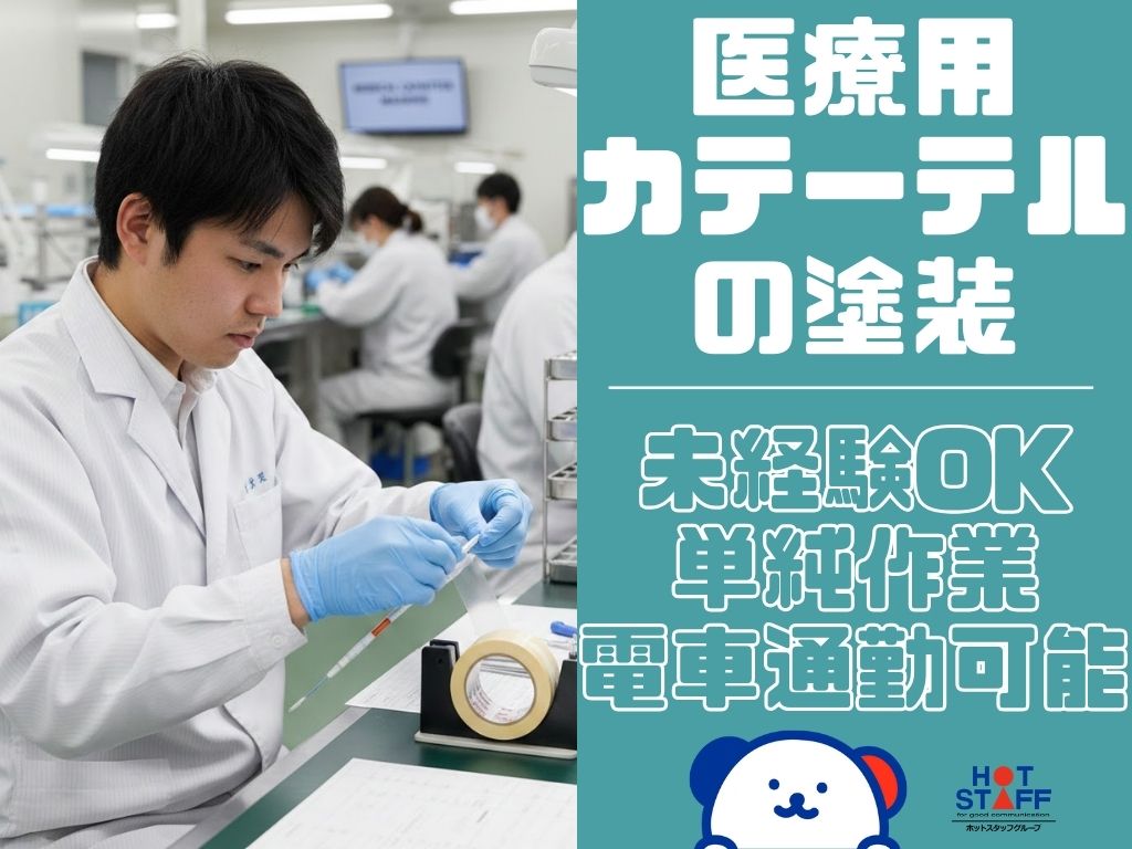 医療用カテーテルの塗装 \ 未経験OKの単純作業・電車通勤が可能♪ /