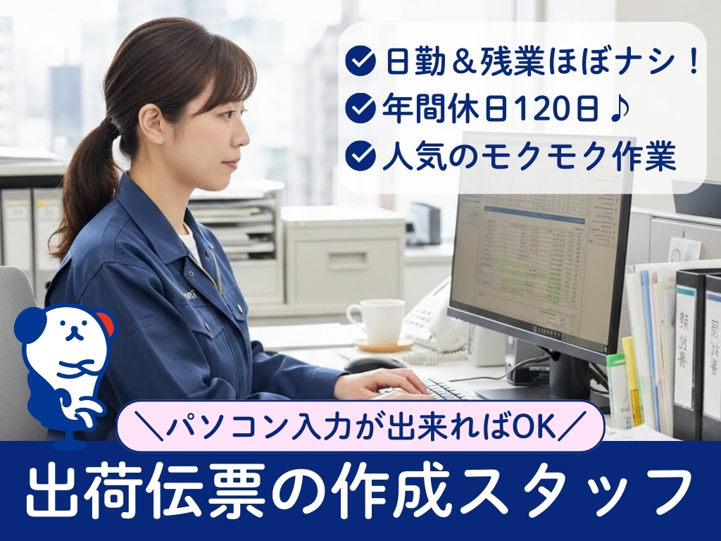 裾野市/日勤&残業ほぼナシ!/年間休日120日☆彡/入力が出来ればOK!出荷伝票やピッキングリストの作成スタッフ