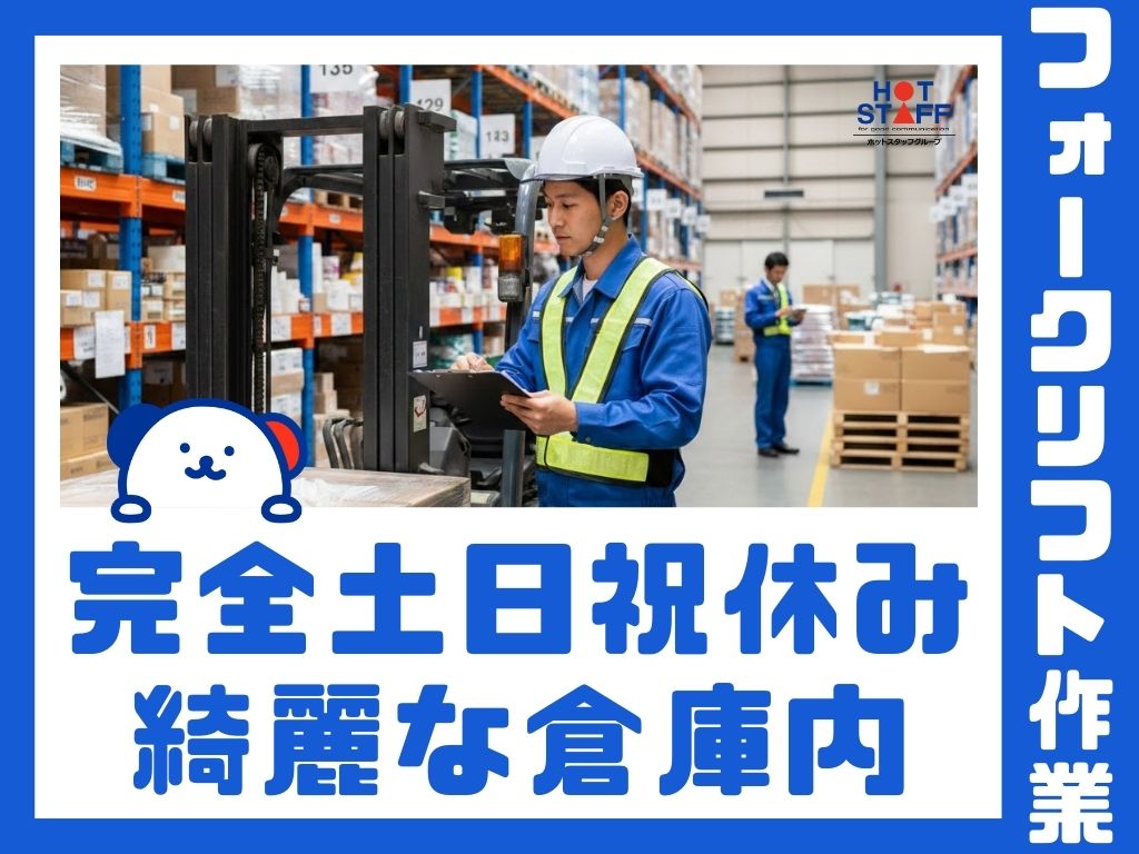 【※経験が活かせる!】フォークリフトでの運搬 °˖✧ 完全土日祝休み・綺麗な倉庫内 ✧˖°