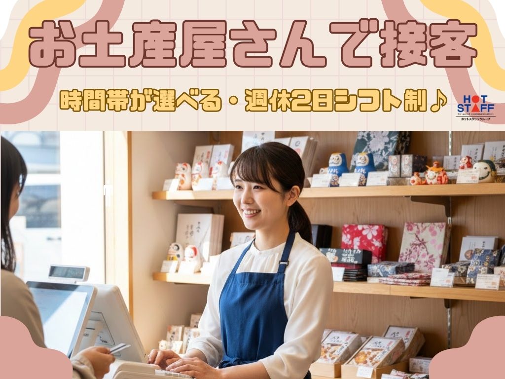 \ お土産屋さんで接客 / 時間帯が選べる・週休2日シフト制♪