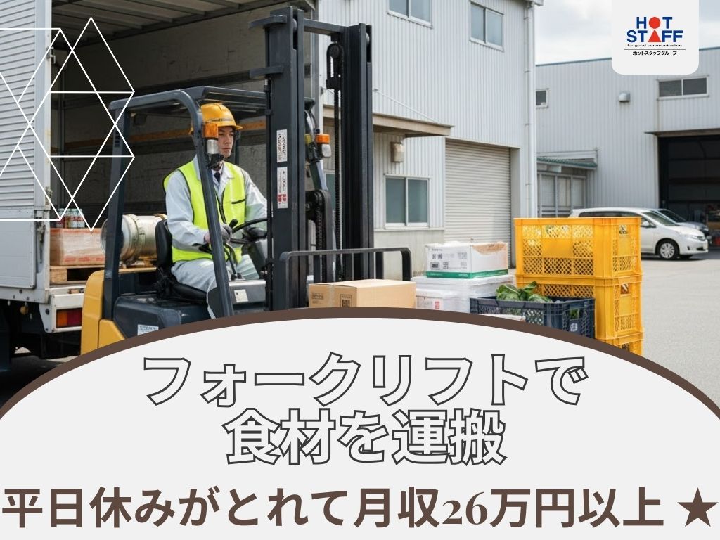 フォークリフトで食材を運搬!平日休みがとれる&月収26万円以上 ★