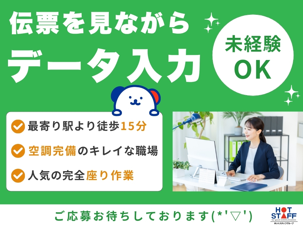 沼津市/最寄駅から徒歩15分/空調完備のキレイな職場/伝票を見ながらデータ入力作業♪